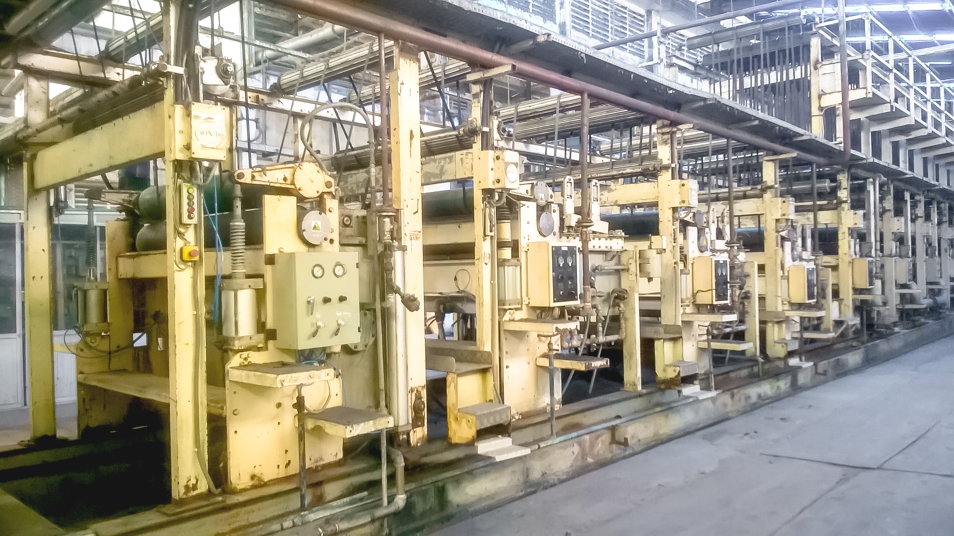 - Quy mô: Máy hồ nhuộm là một dây chuyền tương đối lớn, từ đầu vào đến đầu ra gồm 26 motor đồng bộ và các motor khác. Kích thước máy dài khoản 100 m, với tủ điều khiển dài 8m, hệ thống điều khiển tự động kiểm soát bằng PLC.